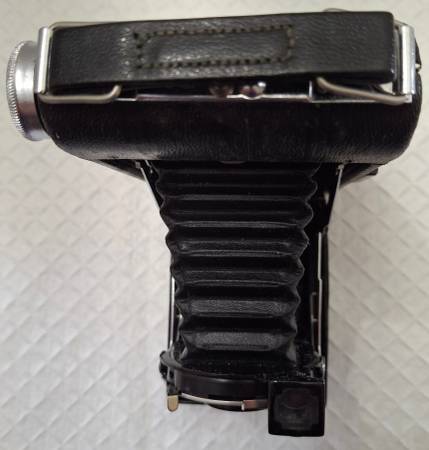 The camera features both a fold-down eye-level frame viewfinder and a waist-level brilliant viewfinder for versatile shooting. Vintage Patina: Light wear from age, adding character to this classic camera. A true vintage gem for collectors, photographers, and history buffs.