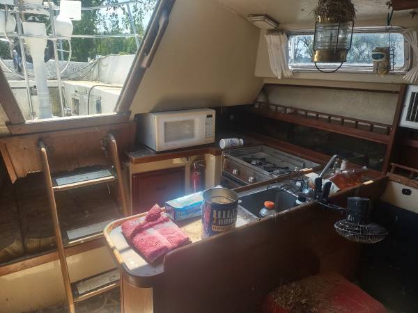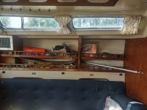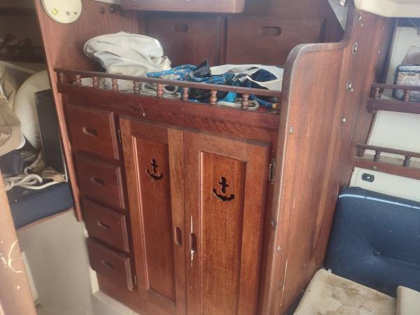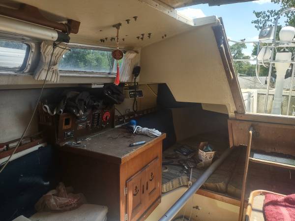 With more than 6000 sold, the Catalina 30 is one of the most successful production sailing yachts in history ! With wheel steering, roller furling, 4 cyl gas engine, and nice canvas and Sails. She features a roomy salon with V-berth and a double quarter berth aft. At this price she won't last long. We found many others listed for $12,500 to $27,900. we are asking Just $5000 best offer. Seat and berth fabric is in good shape. Head with holding tank, Cockpit Cushions etc. A Sound Boat, built Sept 1980 needs cleaning and tinkering !