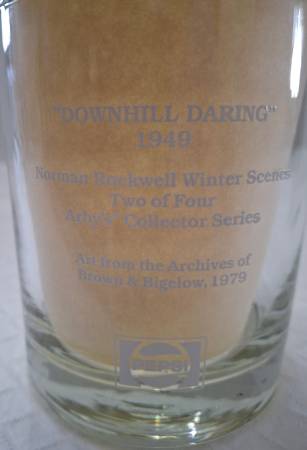 This is a set of 2 vintage 1979 Arby’s Pepsi collector glasses featuring Norman Rockwell’s 1949 “Downhill Daring” illustration. These unique tumblers are part of a limited series released through Arby’s in 1979—only four designs in the collection. This design is two of four in the series and showcases two children sledding with a dog running alongside, capturing a nostalgic and charming scene. The glasses are clear with a white background and a black border framing the artwork. Perfect for Norman Rockwell fans, vintage advertising collectors, or Arby’s memorabilia enthusiasts. 3 ¾” high x 3” in diameter. Holds 12 ounces. In excellent condition – never used. $8 for the set of two.