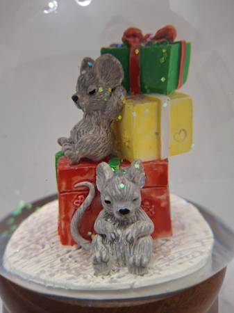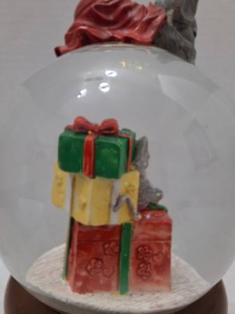 Celebrate the holiday season with this charming vintage 1990 Silvestri Christmas Mice Musical Snow Globe. Featuring two adorable mice resting on presents and a mouse snoozing under a cozy red blanket atop the globe, this delightful piece plays the classic "White Christmas." Crafted with a wood base, it stands approximately 6 inches tall and 3½ inches in diameter. In excellent condition, this nostalgic decoration was made in Taiwan and is perfect for any Christmas or vintage collectibles collection. Add a touch of holiday magic to your home today!