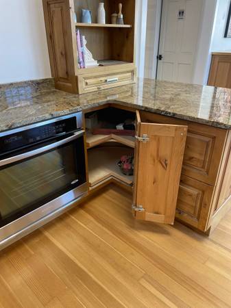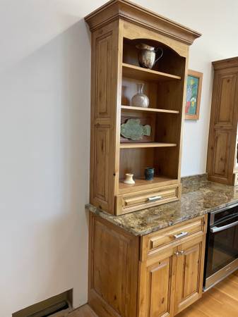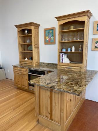 Glazed alder kitchen cabinetry display. Granite top, Amana oven. Never been used. Buyer responsible for removal and shipping. Open to offers