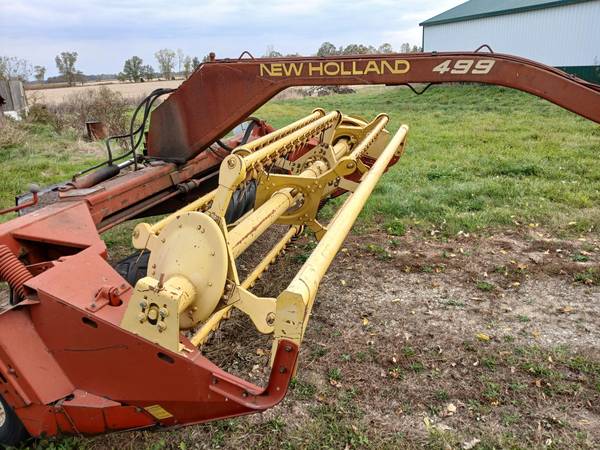 New HOlland 499 haybine - selling for parts - actually runs pretty good, one of the bearings went out on the lower roll. Also, rubber is missing off lower roll. Lower roll does not drive, input...