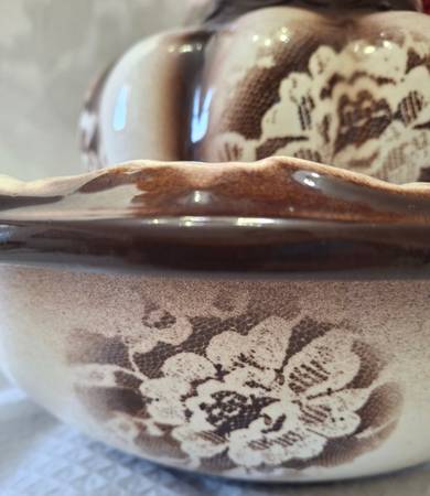 Add a touch of vintage charm to your home with this beautiful Victorian-style ceramic pitcher and basin set, featuring an elegant fall-themed floral arrangement. Perfect for decorating a bathroom, bedroom, or living space, this set echoes the elegance of bygone eras when such pieces were used on wash stands. Crafted in a warm brown and cream color scheme with intricate floral designs, it offers both nostalgic appeal and aesthetic charm.