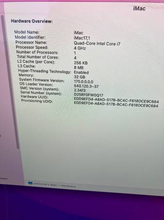 iMac 27-inch Retina 5k Late 2015 500GB hard drive with 32 GB ram running Monterey 12.7.6.