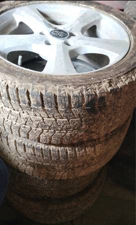 This is a set of Bridgestone Blizzak 215/50R17 snow tires on after market rims with sensors. They were winter tires for a 2022 Chevy Bolt EUV. 8one0 five43 five00four